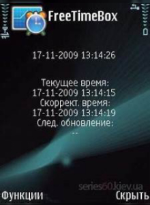 Программа позволяет настроить место, цвет и вид шрифта, которым будет отображаться время на экране. FreeTimeBox включает в себя функцию FreeTimeSync, а именно синхронизацию времени через протокол NTP (Network Time Protocol), которое позволит синхронизировать время с оператором (SMS, WAP), через интернет или же при помощи GPS, точность времени будет составлять до 1 мс.